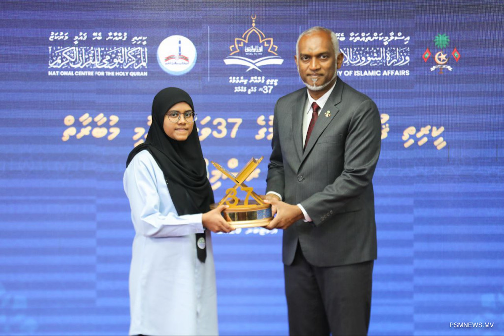 ކީރިތި ޤުރުއާން ކިޔެވުމުގެ 37ވަނަ ޤައުމީ މުބާރާތުގެ ފަޚުރުވެރި ރަންވަނަތައް ފާޠިމަތު ޝާޔާ ޒާހިރު، ޢައިޝަތު ޝަބާ އަދި އަޙްމަދު ޝައިމް ރިޟާއަށް ލިބިއްޖެއެވެ.