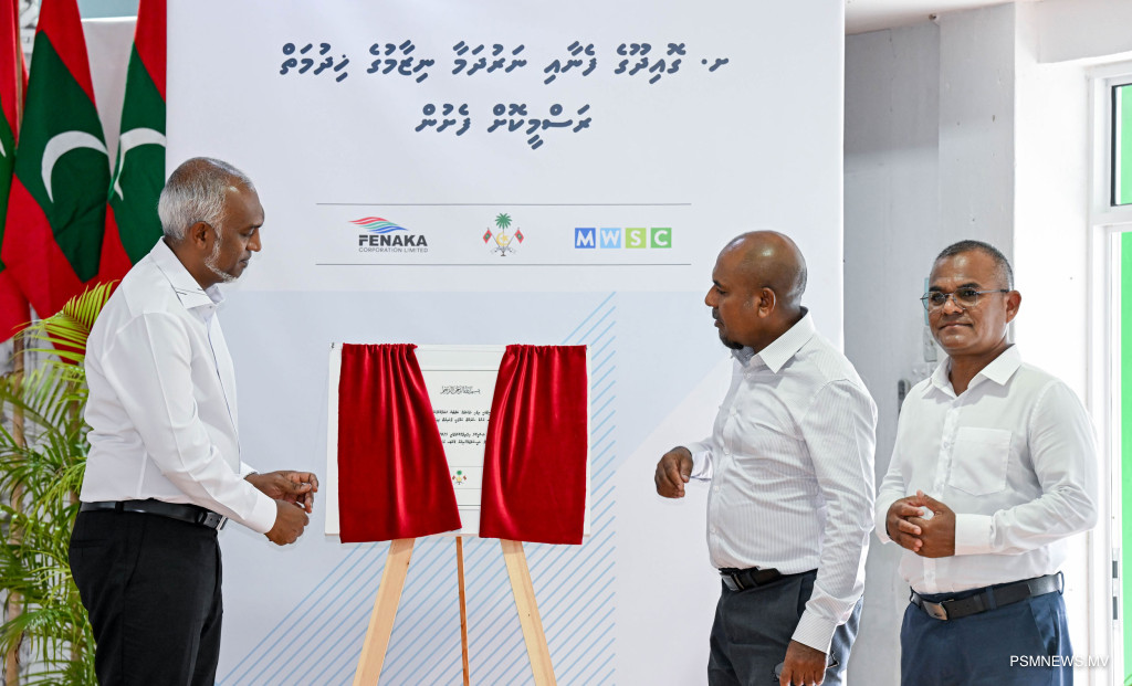 ށ. ގޮއިދޫގެ ފެނާއި ނަރުދަމާ ނިޒާމްގެ ޚިދުމަތް ރަސްމީކޮށް ރައީސުލްޖުމްހޫރިއްޔާ ޑރ. މުޙައްމަދު މުޢިއްޒު ފައްޓަވައިދެއްވަނީ / ފޮޓޯ - ރައީސް އޮފީސް