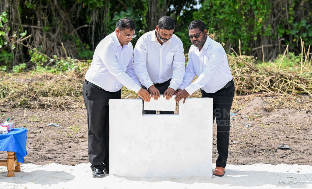 ށ. ގޮއިދޫ ކުނި މެނޭޖްކުރާ ސެންޓަރުގެ ބިންގާ އިދާރީ ދައިރާތައް ހިންގުމާއި އަންމު މަސައްކަތްތަކާއި ބެހޭ ވަޒީރު އާދަމް ޝަރީފް އުމަރު އަޅުއްވައިދެއްވީ / ފޮޓޯ - ރައީސް އޮފީސް