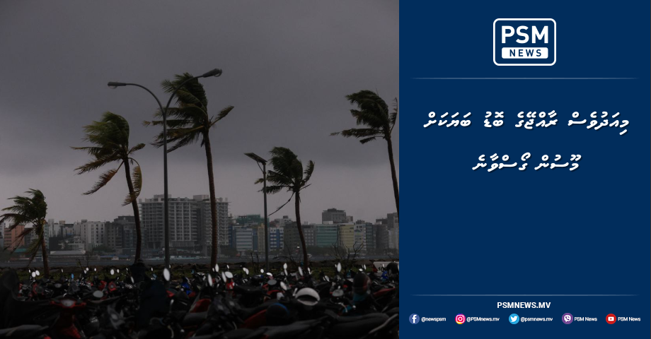 މޫސުމާ ބެހޭ ޤައުމީ އިދާރާއިން ވަނީ ގަޑިއަކު 19 މޭލާއި 24 މޭލާ ދެމެދުގެ ބާރުމިނުގައި ވައި ޖެހި، ވިލާގަނޑުގައި ގަޑިއަކު 45 މޭލަށް ވައިގަދަވެ ކަނޑުތައް ގަދަވާނެ ލަފާކޮށް ރ އަތޮޅުން ފެށިގެން އައްޑޫ ސިޓީއަށް ހުދު ސަމާލު ނެރެފައެވެ. ރ އަތޮޅުން ފެށިގެން އައްޑޫ ސިޓީއަށް ހުދު ސަމާލު ނެރެފައިވަނީ މިއަދު މެންދުރުފަހު 02:00 ހާހަމައަށްށެވެ.