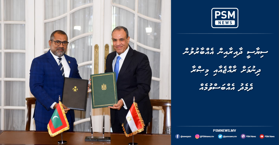 ރާއްޖެއާއި މިޞްރާއި ދެމެދު ސިޔާސީ ދާއިރާއިން އެހީތެރިކަން ފޯރުކޮށްދިނުމާ ގުޅޭގޮތުން ދެޤައުމުގެ ދެމެދުގައި އެއްބަސްވުމެއްގައި ސޮއިކޮށްފިއެވެ.