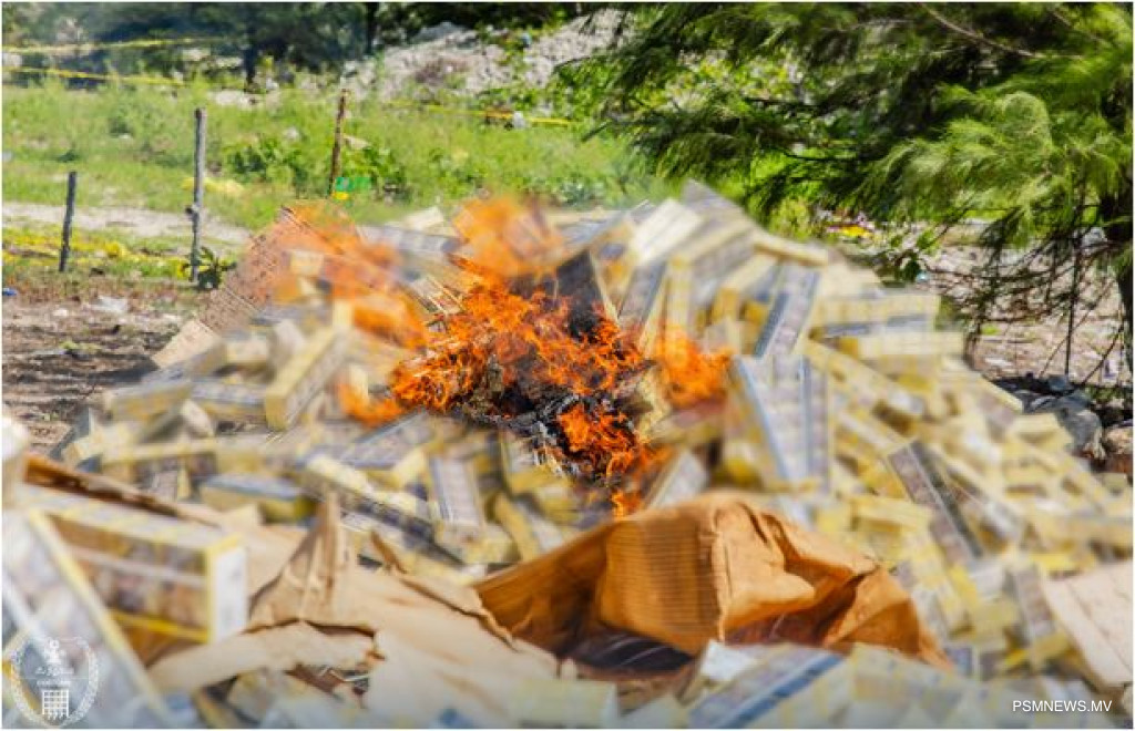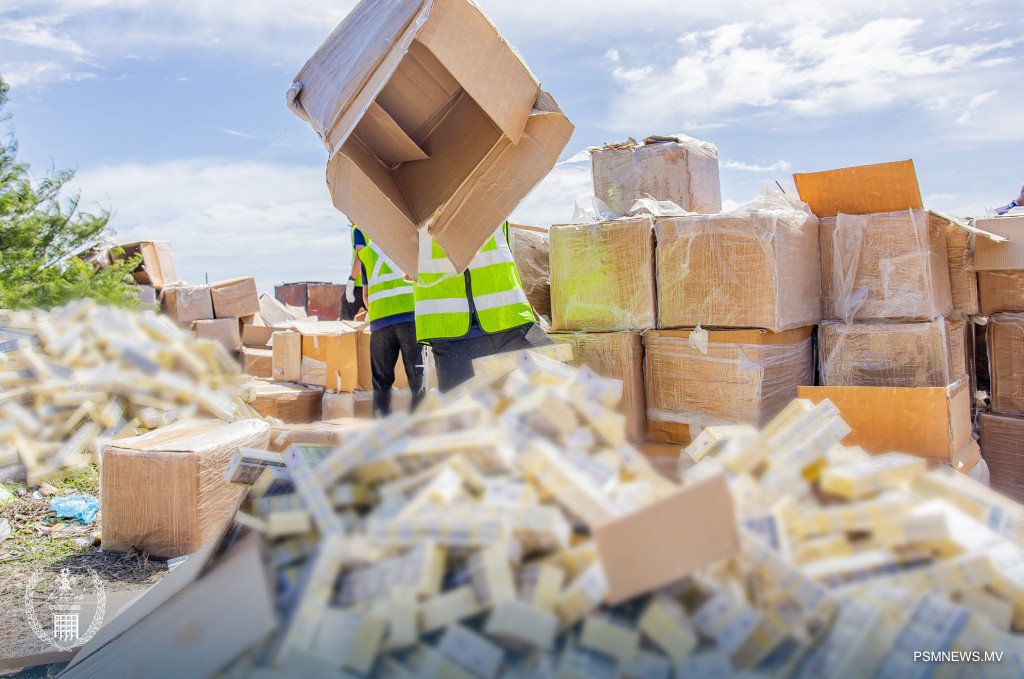 ކަސްޓަމްސްއިން ވިދާޅުވީ ކަސްޓަމްސްގެ ބެލުމުގެ ދަށުގައި ހުރި 3,183,040 (ތިން މިލިއަން އެއްލައްކަ އަށްޑިހަ ތިންހާސް ސާޅީސް) ސިނގިރޭޓް ނުވަތަ 199 ކޭސް ސިނގިރޭޓް ނައްތާލާފައިވާކަމަށެވެ. މިތަކެއްޗަކީ ޤާނޫނާ ގަވާއިދާ ޚިލާފަށް ރާއްޖެއަށް އެތެރެކުރަން އުޅެނިކޮށް ކަސްޓަމްސްގެ ބަލައިފާސްކުރުމުގެ ތެރެއިން ހޯދިފައިވާ ތަކެތިކަމަށް އެ މުޢައްސަސާއިން ވިދާޅުވެއެވެ. އަދި މި ތަކެތި ނައްތަލާފައި ވަނީ ދޫނިދޫގައެވެ.