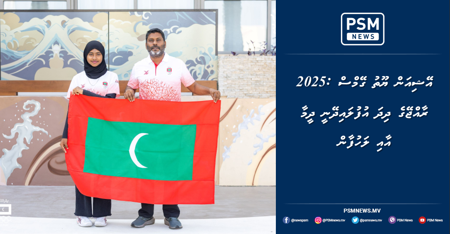 ތިންވަނަ އޭޝިއަން ޔޫތު ގޭމްސް 2025 ގައި ރާއްޖޭގެ ދިދަ އުފުލައިދޭނެ އެތުލީޓުންގެ ގޮތުގައި ބީޗް ވޮލީބޯޅަ ކުޅުންތެރިޔާ އައިޝަތު ދީމާ ނަދީމް އާއި ހޭންޑްބޯޅަ ޓީމުގެ ކެޕްޓަން ލަހުފާން ޝަހީމް ހަމަޖައްސައިފިއެވެ.