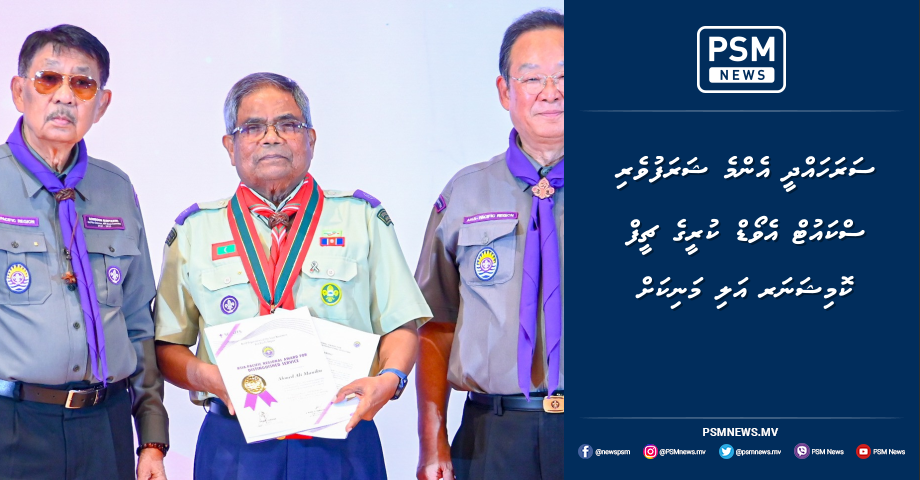 މި އެވޯޑު އަރުވާފައިވަނީ މި މަހުގެ 12އިން 17އަށް ޓައިވާނުގެ ކައުޝިންގްގައި ކުރިއަށްދިޔަ 28 ވަނަ އޭޝިއާ ޕެސިފިކް ސްކައުޓު ކޮންފަރެންސްގެ ނިންމާލުމުގެ ރަސްމިއްޔާތުގައެވެ.