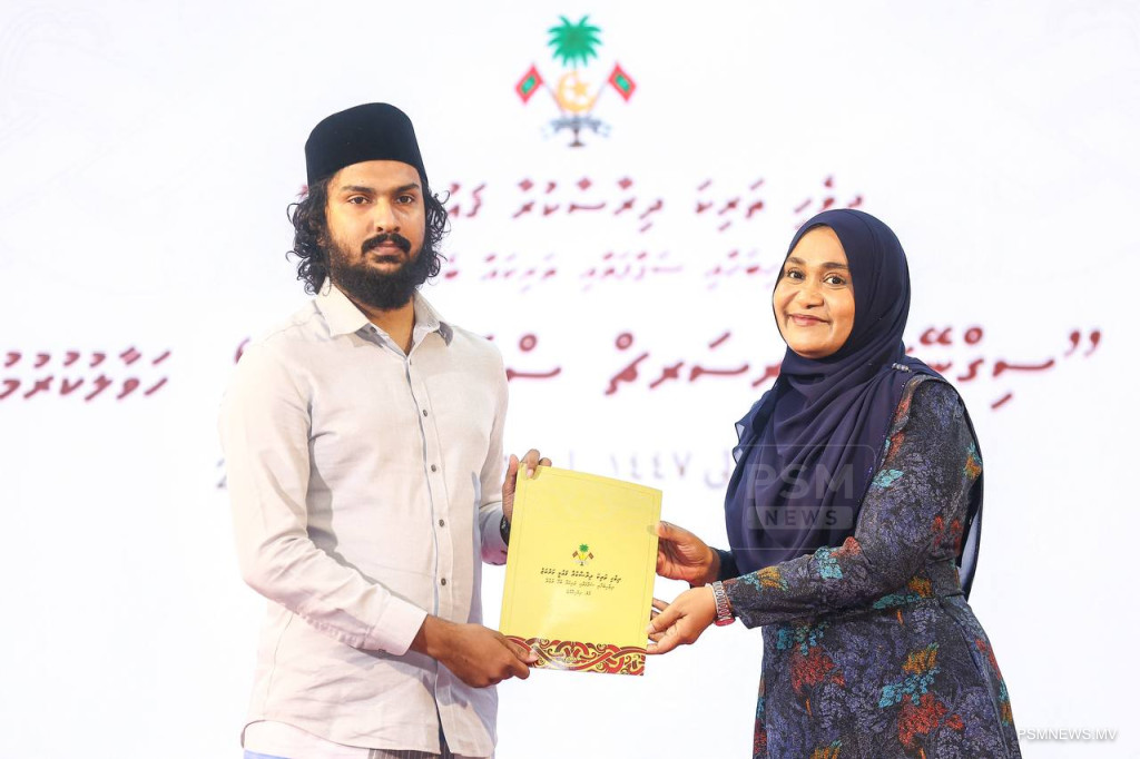މި ފަރާތްތަކަށް ސްކޮލަރޝިޕް ލިބުންކަމުގެ ލިޔުން ހަވާލުކޮށްދެއްވީ އެކަމަށްޓަކާ ދިވެހިރާއްޖޭގެ އިސްލާމީ ޔުނިވަރސިޓީގައި ބޭއްވި ޚާއްސަ ރަސްމިއްޔާތުގައި ރައީސުލްޖުމްހޫރިއްޔާގެ އަނބިކަނބަލުން ސާޖިދާ މުޙައްމަދެވެ.