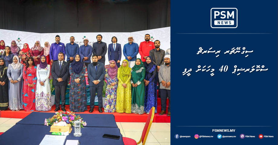 ތަރިކަ ދިރާސާކުރުމުގެ ދާއިރާއިން ދޭ "ސިގްނޭޗަރ ރިސަރޗް ސްކޮލަރޝިޕް" 40 މީހަކަށް އެވޯޑްކޮށްފިއެވެ.