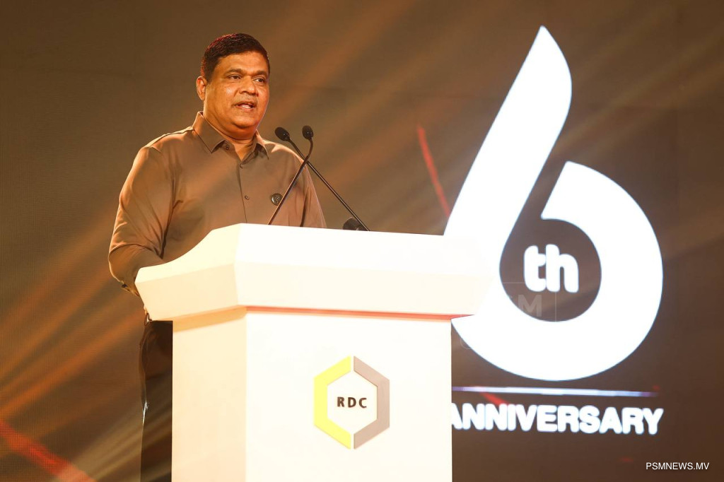 އާރްޑީސީއަށް 6 އަހަރު ފުރުން ފާހަގަކުރުމަށް ބޭއްވި ޚާއްސަ ރަސްމިއްޔާތު ޝަރަފްވެރިކޮށްދެއްވާ ވާހަކަފުޅުދައްކަވަމުން ދަތުރުފަތުރާ މަދަނީ އުދުހުންތަކާބެހޭ ވަޒީރު މުޙައްމަދު އަމީން ވަނީ، ރާއްޖޭގެ އުމްރާނީ ތަރައްޤީގައި އާރްޑީސީއަކީވެސް މުހިންމު ދައުރެއް އަދާކުރާ ކުންފުންޏެއްކަން ފާހަގަކުރައްވާ، އާރްޑީސީން ކުރައްވާ މަސައްކަތް ފާހަގަކޮށް ޝުކުރުއަދާކުރައްވާފައެވެ.