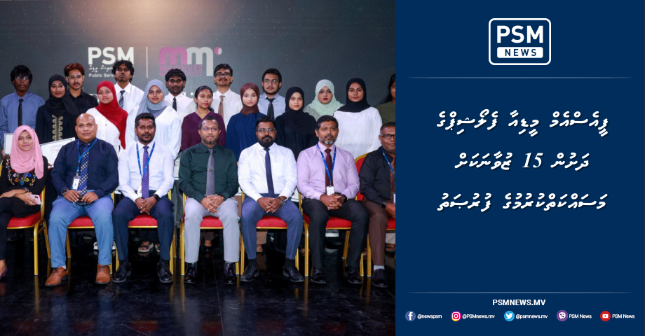"ޕީއެސްއެމް މީޑިއާ ފެލޯޝިޕް 2025" ގެ ދަށުން 15 ޒުވާނަކަށް ޕީއެސްއެމްގައި މަސައްކަތްކުރުމުގެ ފުރުޞަތު ދީފިއެވެ. މި ޕްރޮގްރާމަކީ މީޑިއާ ދާއިރާއަށް ޝައުގުވެރި ޒުވާނުންނަށް އަމާޒުކޮށްގެން ޕީއެސްއެމްއިން ހިންގާ ޕްރޮގްރާމެކެވެ.
