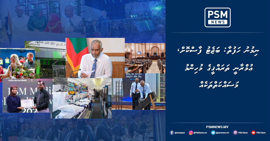 ނިމުނު ހަފުތާގައި އެހެނިހެން ދާއިރާތަކުން ފާހަގަކޮށްލެވޭ ޚަބަރުތަކަށް ބަލާލާއިރު، (22 ނޮވެންބަރު) ފާއިތުވި 3 އަހަރު ބޯންމެރޯ ހެދުމަށް ޒަކާތު ފަންޑުން 24 މީހަކަށް އެހީތެރިކަން ފޯރުކޮށްދީފައިވާކަން ހާމަކުރި ޚަބަރު ފާހަގަކޮށްލެވެއެވެ. (22 ނޮވެންބަރު) އަދި އެއަރ އެމްބިއުލާންސްގެ ޚިދުމަތަށް 114.1 މިލިޔަން ރުފިޔާ ޚަރަދުކޮށްފައިވާކަން ހާމަކުރައްވާފައިވާއިރު، މާލޭގައި އަލަށް ހުޅުވި ޕްރައިމަރީ ހެލްތު ކެއަރ ސެންޓަރުން ޚިދުމަތް ދޭން ފެށި ޚަބަރުވެސް ފާހަގަކޮށްލެވެއެވެ. (22 ނޮވެންބަރު) އަދި ހއ. އަތޮޅު ހޮސްޕިޓަލުގެ އައު ޢިމާރާތުގެ މަސައްކަތް ފަށާފައިވާއިރު، (23 ނޮވެންބަރު) ޕީއެސްއެމް މީޑިއާ ފެލޯޝިޕް ޕްރޮގުރާމްގެ ދަށުން 15 ޒުވާނަކަށް މަސައްކަތްކުރުމުގެ ފުރުޞަތުދިނީ ވެސް ނިމުނު ހަފުތާގައެވެ.