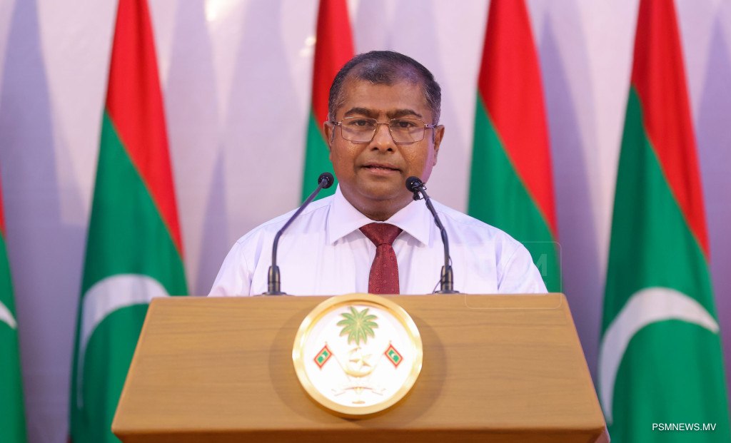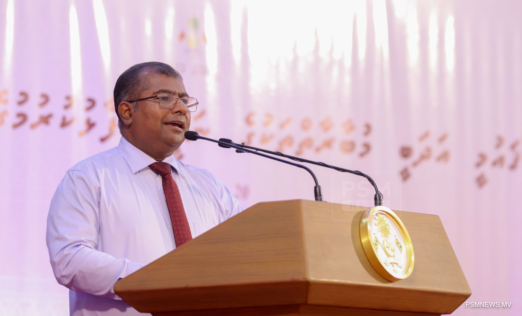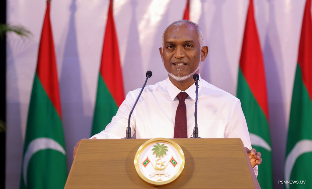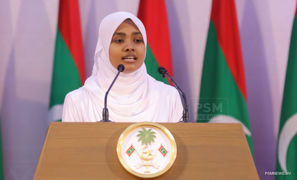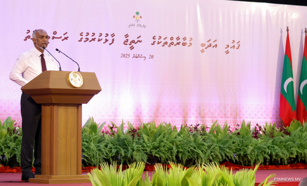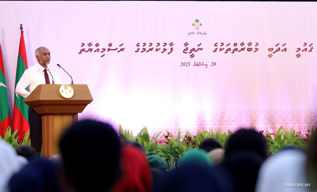 ޤައުމީ އަދަބީ މުބާރާތްތަކާއި އަތުލިޔުން މުބާރާތުގެ އިނާމް ދިނުމުގެ ރަސްމިއްޔާތުގައި ރައީސުލްޖުމްހޫރިއްޔާ ޑރ. މުޙައްމަދު މުޢިއްޒު ވާހަކަފުޅު ދައްކަވަނީ / ފޮޓޯ: މުޙައްމަދު ވަޙީދު، ޕީއެސްއެމް ނިއުސް