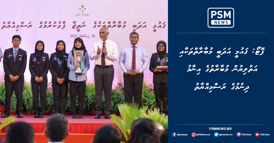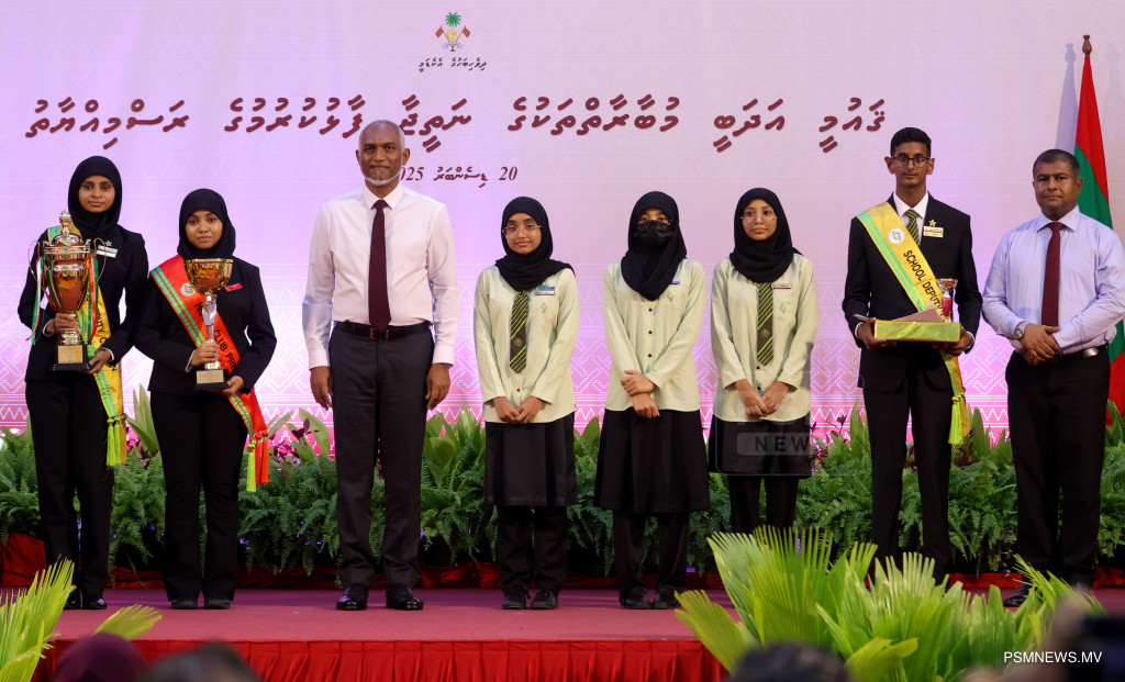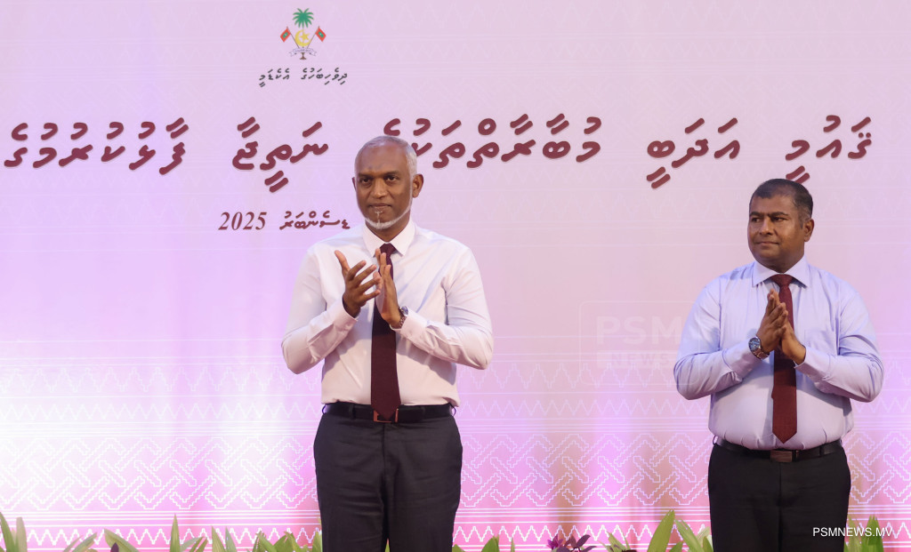 ޤައުމީ އަދަބީ މުބާރާތްތަކާއި އަތުލިޔުން މުބާރާތުގެ އިނާމް ދިނުމުގެ ރަސްމިއްޔާތުގައި ރައީސުލްޖުމްހޫރިއްޔާ ޑރ. މުޙައްމަދު މުޢިއްޒު / ފޮޓޯ: މުޙައްމަދު ވަޙީދު، ޕީއެސްއެމް ނިއުސް