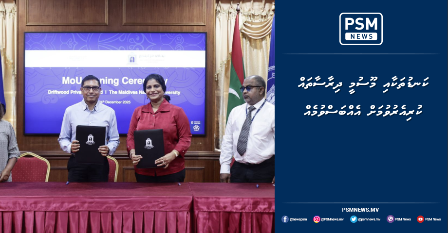 ކަނޑުތަކާއި ތިމާވެށި އަދި މޫސުމީ ބަދަލުތަކާ ގުޅޭ ދިރާސާތައް ކުރިއެރުވުމަށް ދިވެހިރާއްޖޭގެ ގައުމީ ޔުނިވަރސިޓީއާއި ޑްރިފްޓްވުޑް މޯލްޑިވްސް ޕްރައިވެޓް ލިމިޓެޑާ ދެމެދު، ފަހުމުނާމާއެއްގައި ސޮއިކޮށްފިއެވެ.