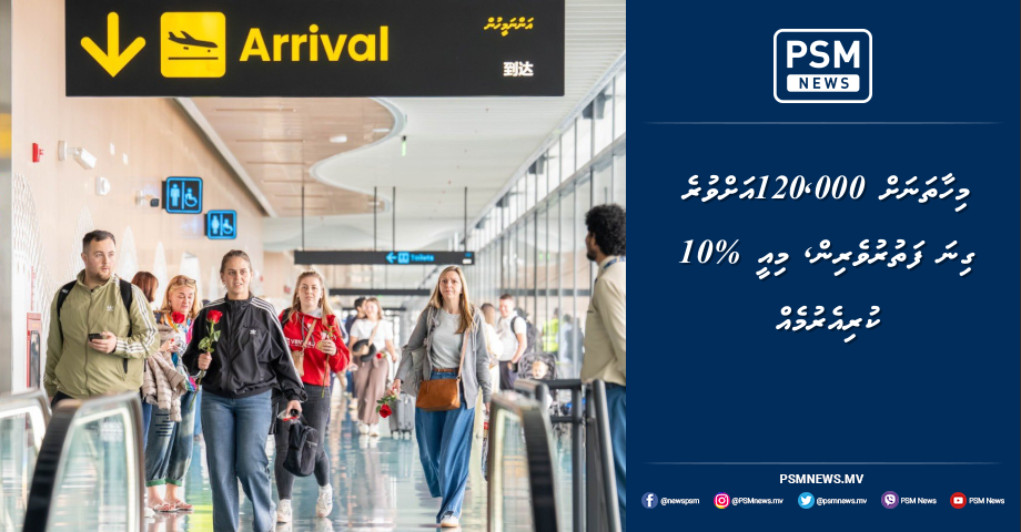 ފަތުރުވެރިކަމާ ބެހޭ ވުޒާރާއިން އާއްމުކޮށްފައިވާ އެންމެ ފަހުގެ ޑެއިލީ އަޕްޑޭޓު ރިޕޯޓުގައިވާގޮތުން މިމަހުގެ 17 ވަނަ ދުވަހުގެ ނިޔަލަށް 120،680 ފަތުރުވެރިން ރާއްޖެއަށް އައިސްފައިވާއިރު، މިއީ މިދިޔަ އަހަރުގެ މި މުއްދަތުގައި ރާއްޖެއަށް އައިސްފައިވާ 109،501 ފަތުރުވެރިންނާ އަޅާ ބަލާއިރު %10.2 އިތުރު އަދަދެކެވެ.