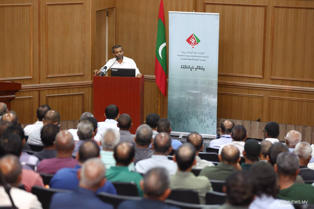 ޙައްޖު ކޯޕަރޭޝަނުގެ ޙަވާލުގައި ޢުމްރާއަށްދާ މީހުންނަށް މަޢުލޫމާތު ދިނުން / ފޮޓޯ: ޖަލްވާން ޖަމީލް، ޕީއެސްއެމް ނިއުސް