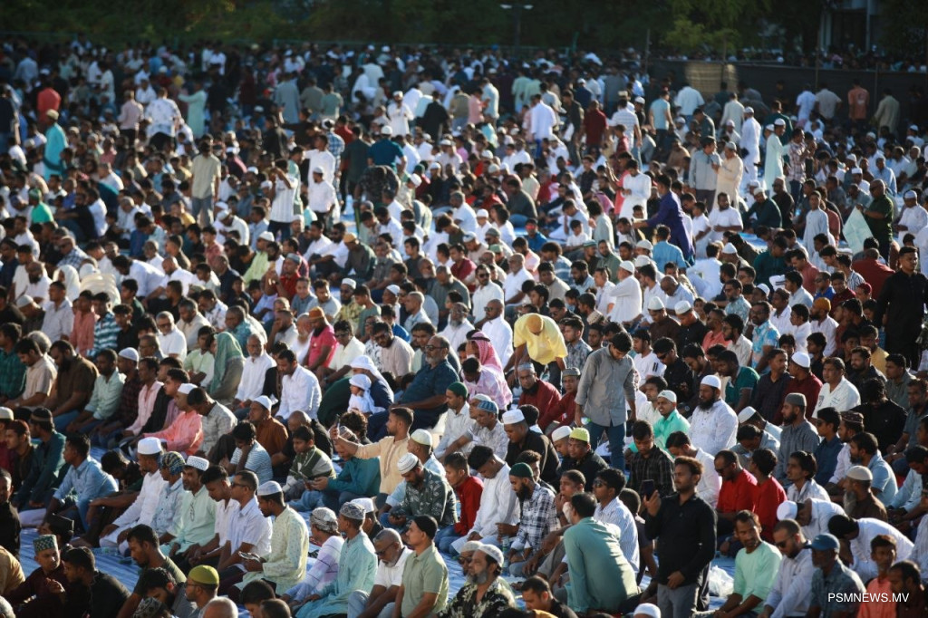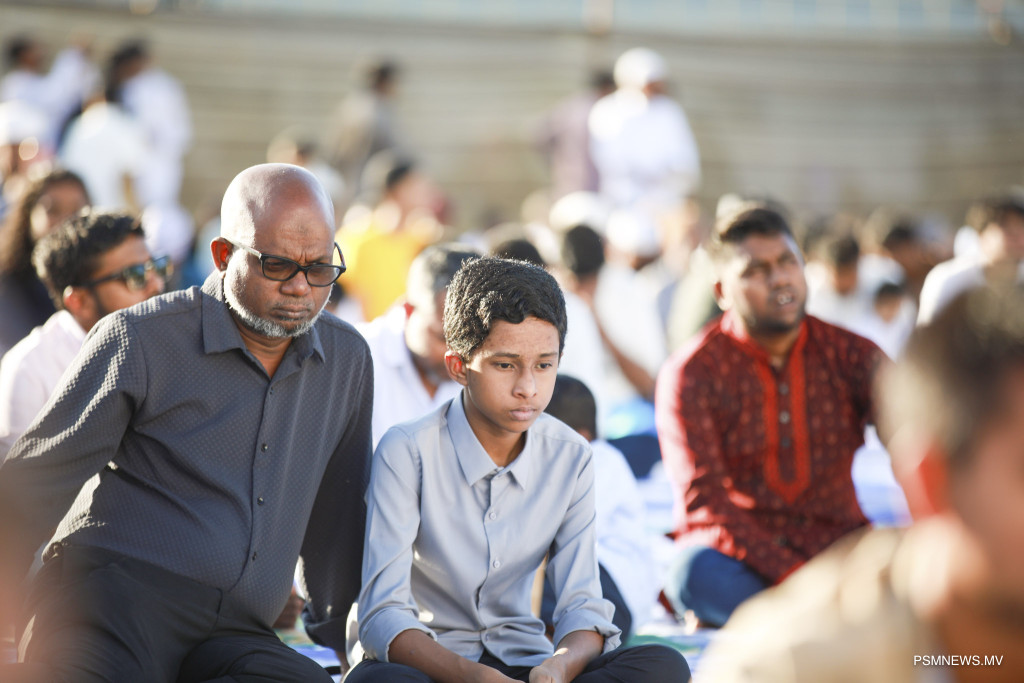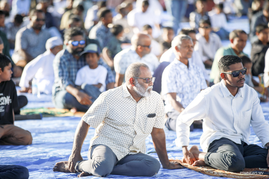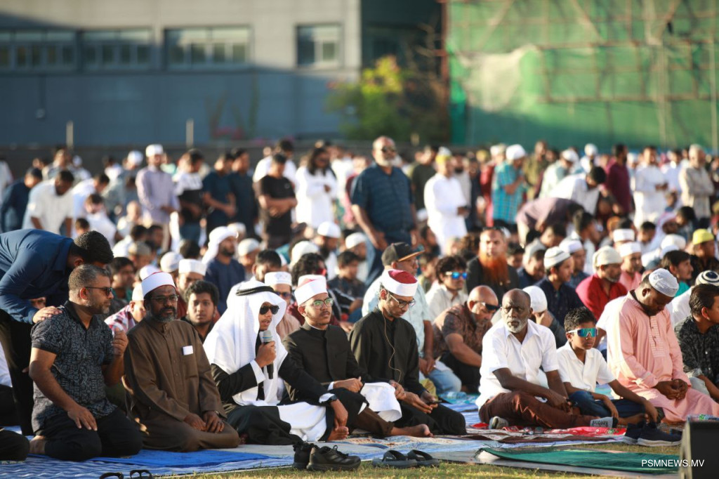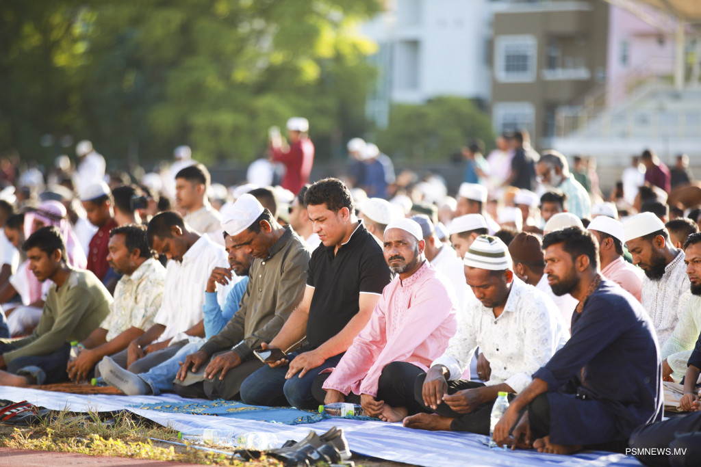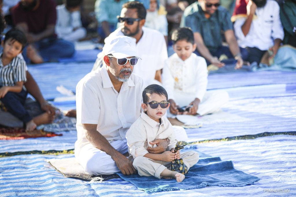 ފޮޓޯ: ހުޅުމާލޭގައި ބޮޑު ޖަމާއަތުގައި ކުރި ފިޠުރު ޢީދު ނަމާދު