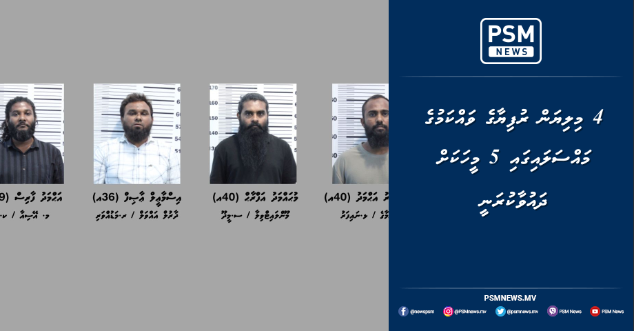 މި މައްސަލައިގައި ޖުމުލަ ފަސް މީހަކަށް ތުހުމަތު ކުރެވޭއިރު، އޭގެ ތެރެއިން ހަތަރު މީހަކު މިހާރު ތިބީ ފުލުހުންގެ ބަންދުގައެވެ. މި މައްސަލައިގައި ހައްޔަރުކޮށްފައިވަނީ ޅ. ނައިފަރު، ކަސްތޫރިމާގެ، މުޙައްމަދު ނޫރު އަޙްމަދު (40އ) އާއި، ސ. މީދޫ، މޫންލައިޓްވިލާ، މުޙައްމަދު އަފްރާޙް (40އ) އާއި، ރ. މަޑުއްވަރި، ދާރުލް އައްވަލް، އިސްމާޢީލް ޢާޞިފް (36އ) އަދި މާލެ، މ. އޭސިއާ، އަޙްމަދު ފާރިސް (39އ) އެވެ.