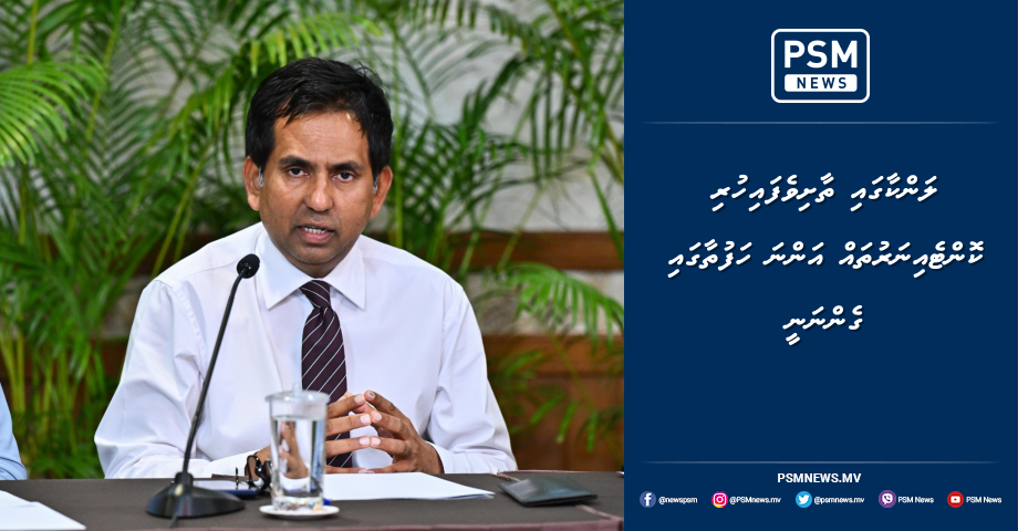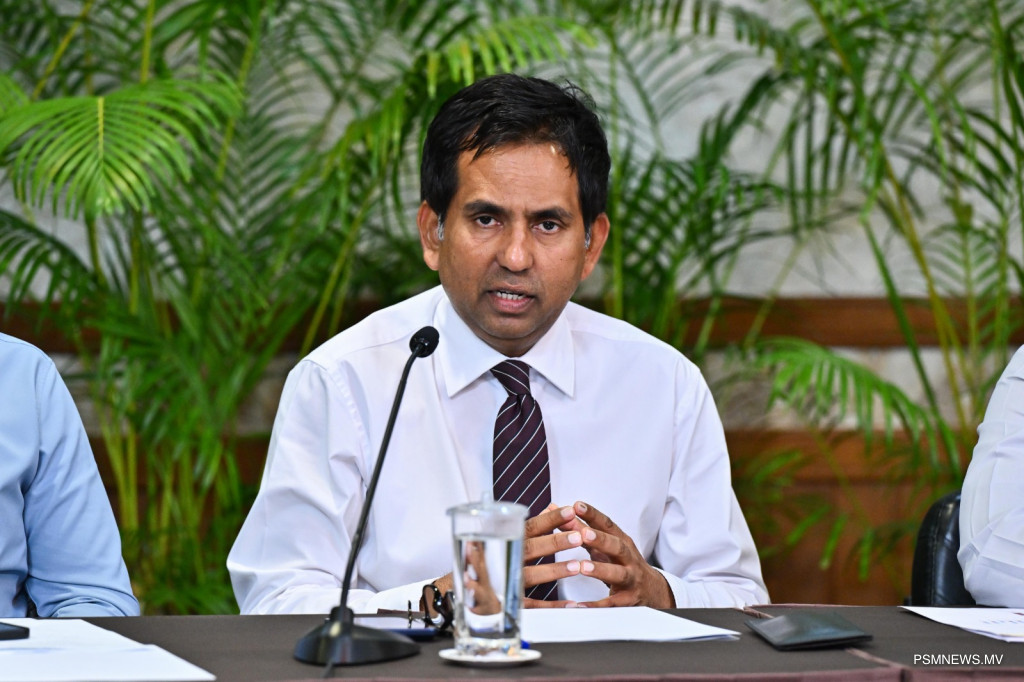 ވަޒީރު ސަޢީދު މިހެން ވިދާޅުވީ، ރައީސުލްޖުމްހޫރިއްޔާގެ އޮފީހުގައި ބޭއްވި ނޫސްވެރިންގެ ބައްދަލުވުމުގައި ވާހަކަފުޅު ދައްކަވަމުންނެވެ.